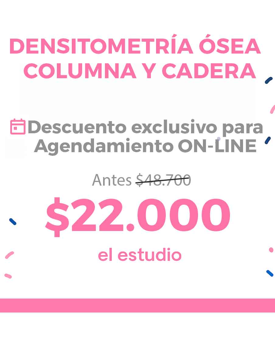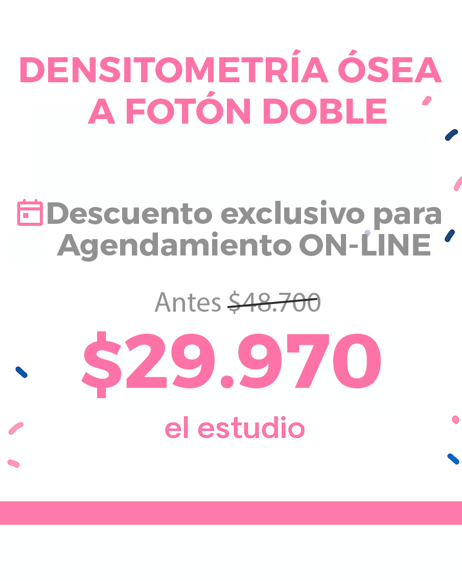 Es una evaluación de las estructuras óseas: columna y cadera, mediante un haz de baja dosis de radiación ionizante que permite obtener parámetros fidedignos en relación a la salud ósea, traduce parámetros como: normal (bajo riesgo), osteopenia (riesgo moderado), osteoporosis (riesgo alto), relacionados al riesgo de padecer alguna fractura que pueda inhabilitar a la persona.