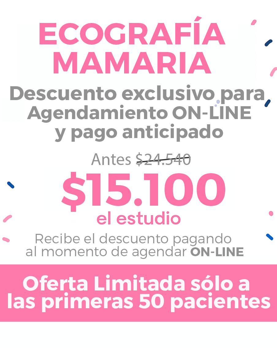 La ecografía mamaria es un examen complementario a la mamografía. Se examina con un ecógrafo tanto las mamas como las axilas. Es un estudio no invasivo y que no produce dolor. Permite distinguir si se trata de un nódulo sólido (lo que requiere continuar el estudio) o es de contenido líquido (quiste), el cual es normalmente benigno.