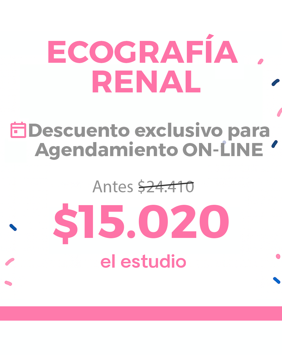 La ecografía renal o abdominal es el examen de preferencia para diagnosticar una obstrucción en las vías urinarias. La enfermedad renal poliquística se diagnostica mediante la ecografía. Los riñones pequeños y que han perdido su aspecto normal (esclerosados), se observan en la etapa final de la enfermedad crónica. Puede complementarse con la técnica Doppler, a pedido del médico tratante, para evaluar el flujo de sangre en las arterias renales.
